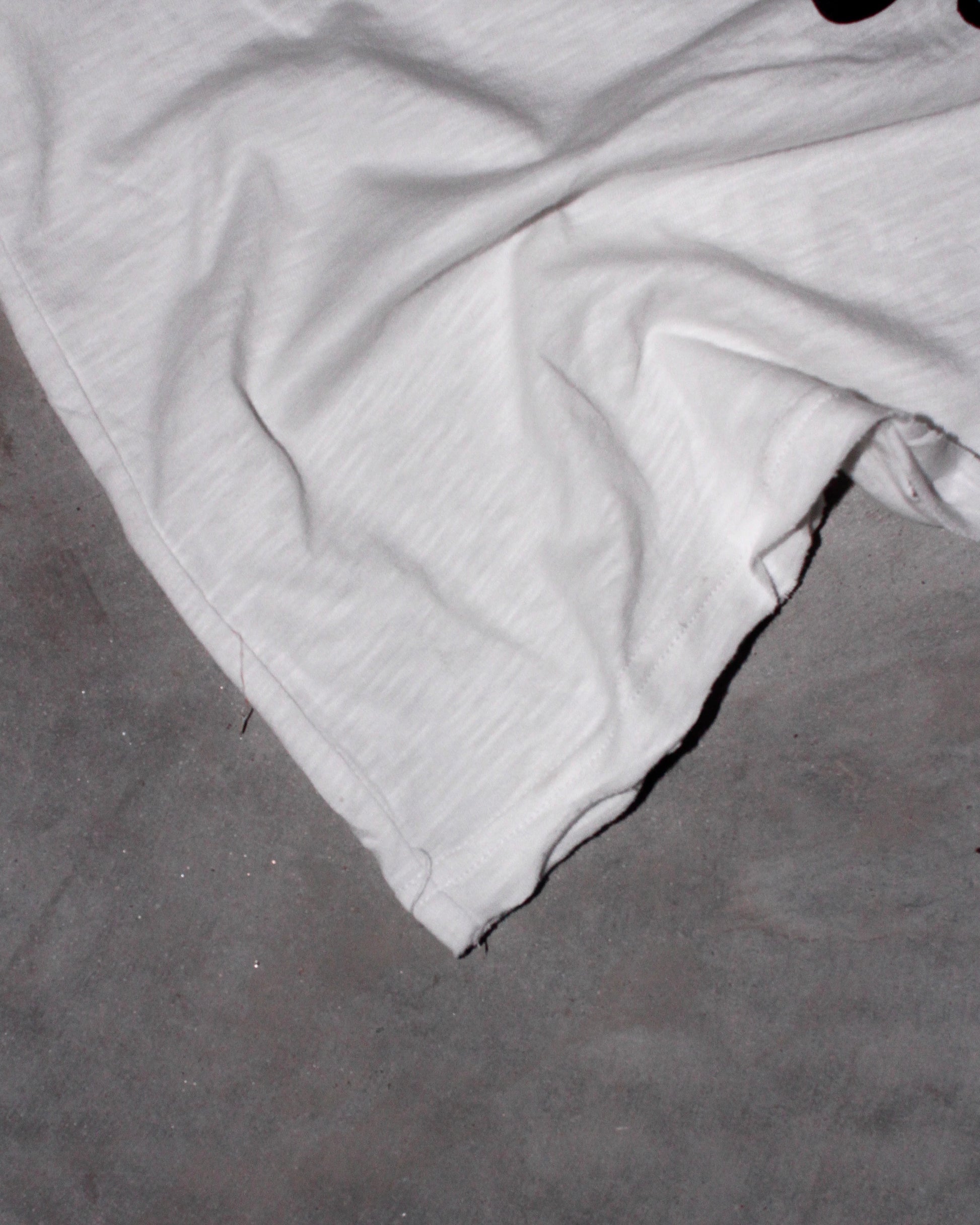 100% organic slub cotton. All-over distressing. Slant shoulders, cropped fit. Made to last (and comes with a cute print).