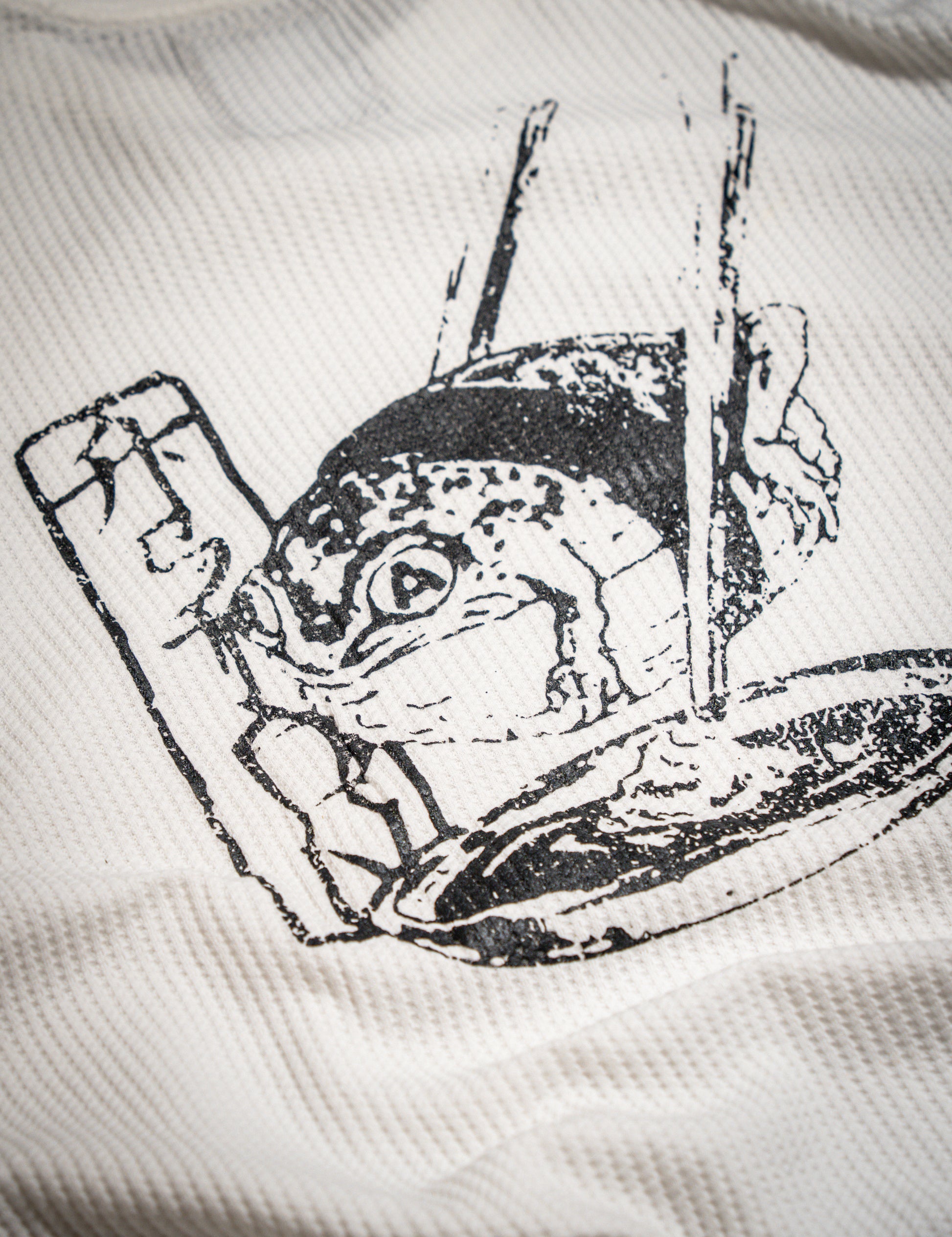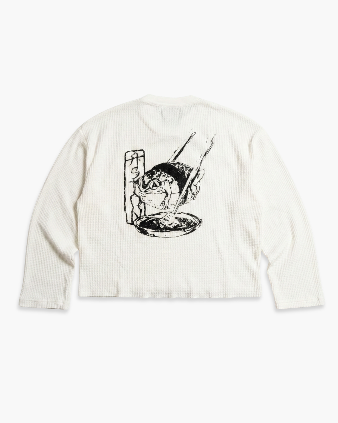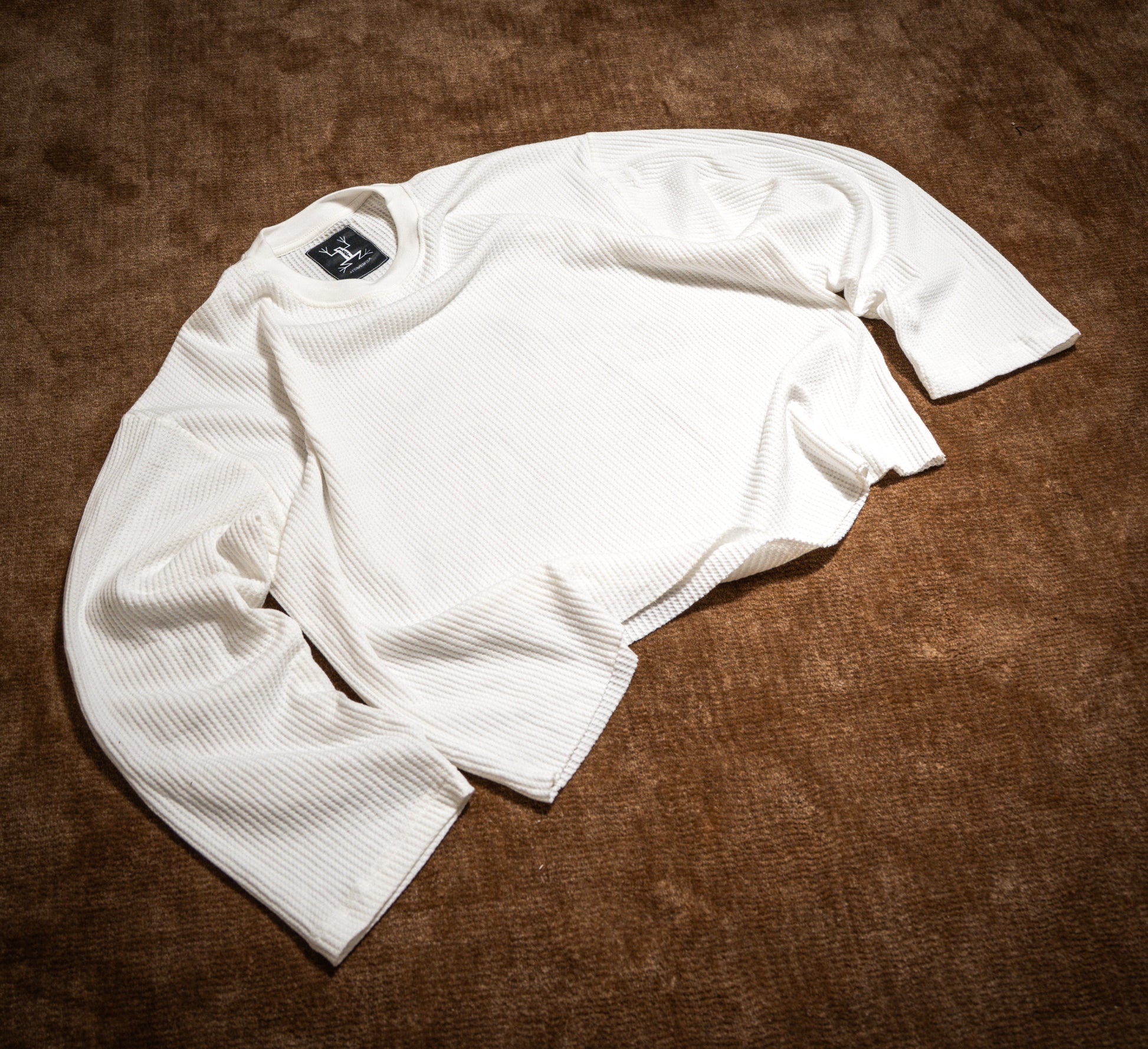 Lightweight waffle-knit cotton. Raw hem. Reinforced collars. Dropped shoulders, relaxed cut. Made for transitional weather.